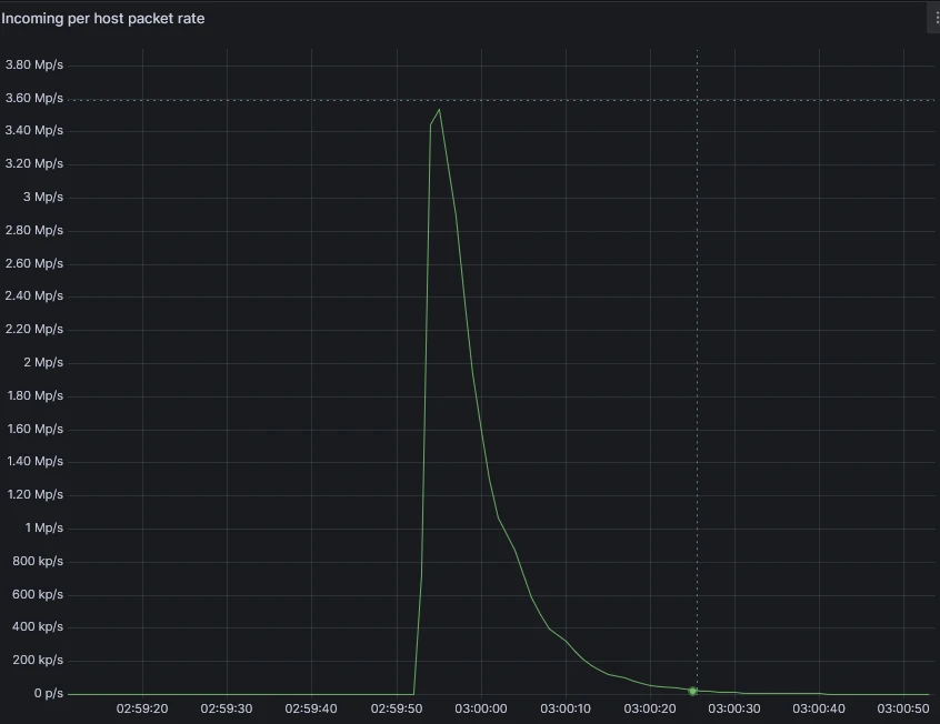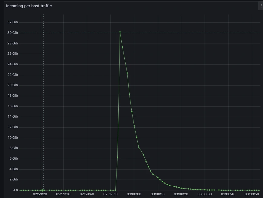 The true value of this stack is best illustrated by a real-world event. On April 12, 2026, while our engineering team was asleep, the system was put to the test by a massive 32.4 Gbps UDP flood.